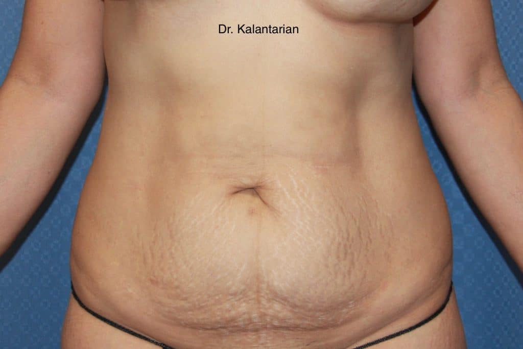 Case# 1634 Tummy Tuck 40-45 year old patient complaining of flaps and skin and fat on her stomach area, after pregnancies and weight loss. She was treated with an extended tummy tuck. Dr Kalantarian cut out all excess skin, tightened the muscles on the fascia and abdominal wall to give her a flatter more attractive abdomen.